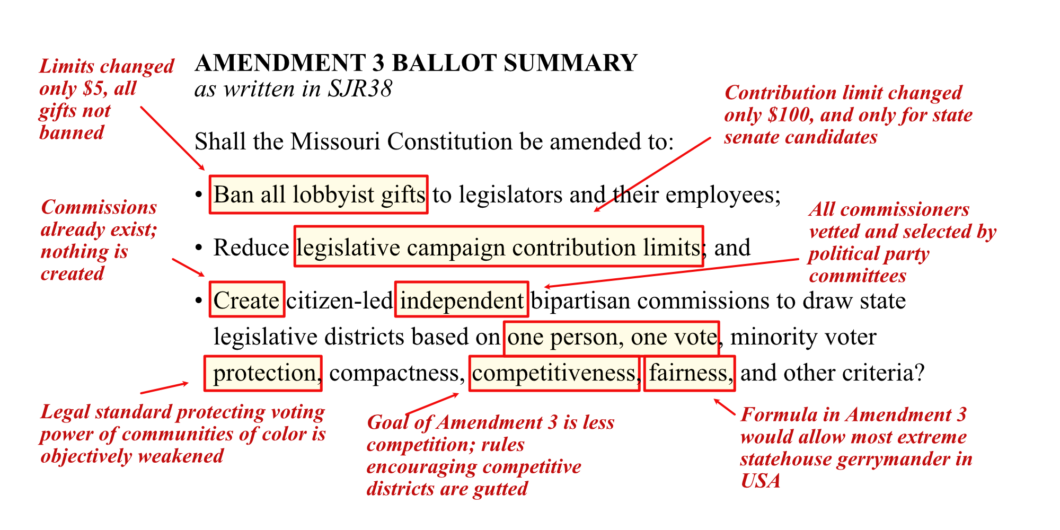 Cole County Circuit Judge Patricia S. Joyce will hear arguments this Friday, August 7 at 10:30 a.m. for a citizens’ challenge to dishonest and misleading ballot language written by politicians for their Amendment 3 gerrymandering plan.